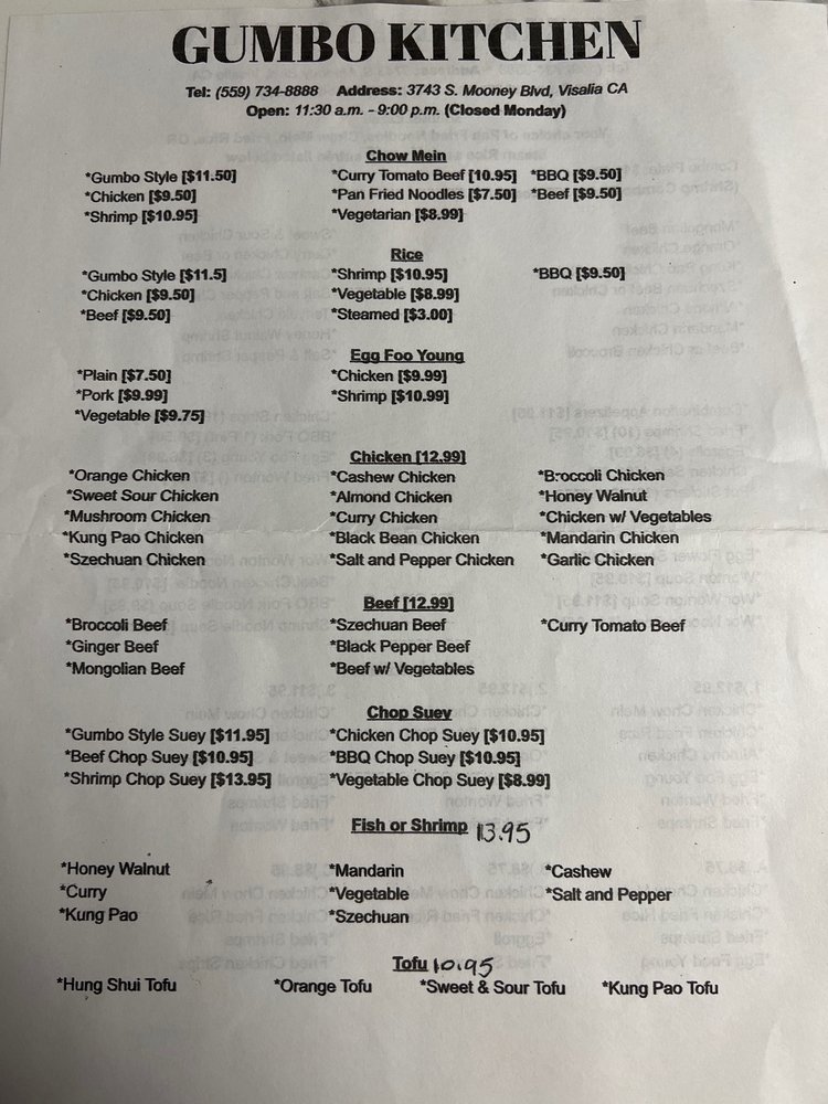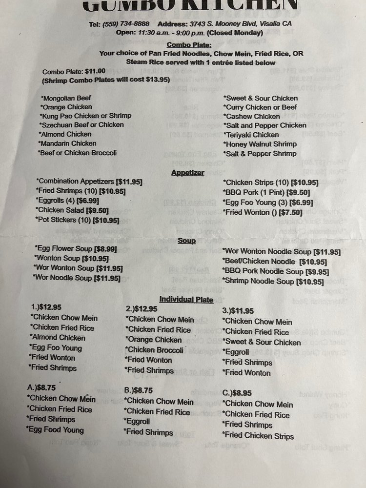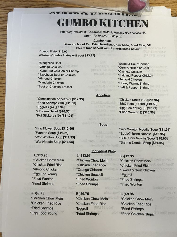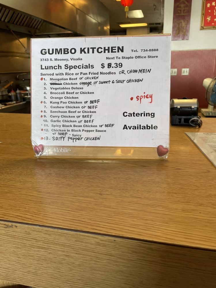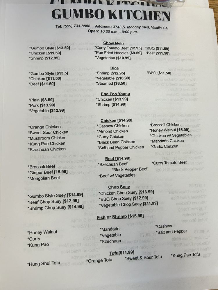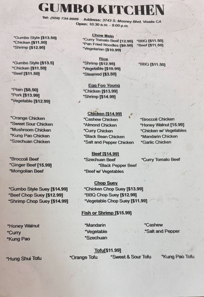 Welcome to Gumbo Kitchen, a hidden gem for authentic Chinese cuisine located at 3743 S Mooney Blvd in Visalia, CA. This charming restaurant offers a casual yet classy environment, perfect for a meal with family or friends.